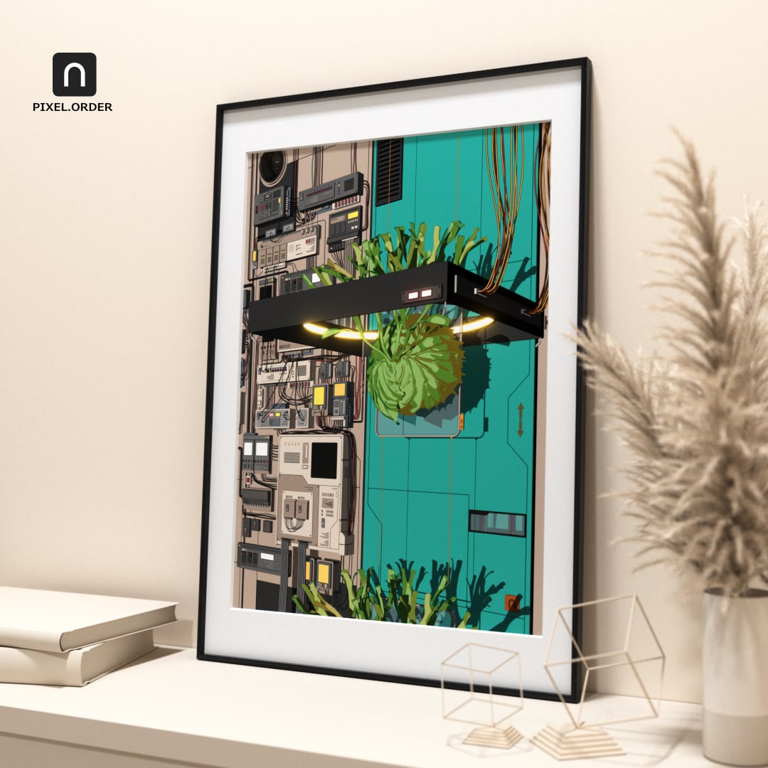 室内栽培では、光・湿度・風といった環境を整えるほどに、自然を管理しているはずが、いつの間にか“過剰に作られた環境”へと変わっていきます。本作は、その矛盾と可笑しさを視覚化したものです。