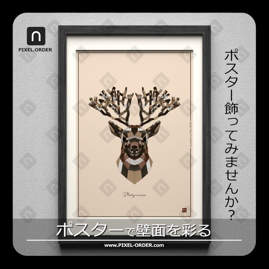 ビカクシダ鹿ポスター【Poly】ブラウン A4